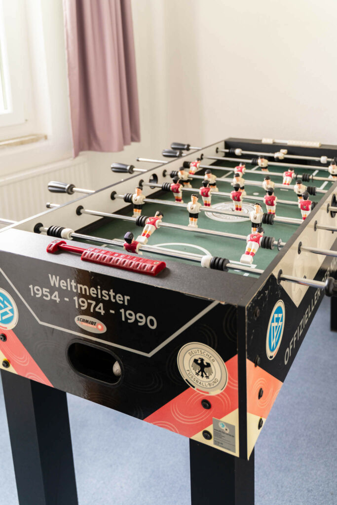 Für unsere zwölf Bewohner bieten wir drei großzügige Freizeiträume, die als Treffpunkt für gemeinsame Aktivitäten und geselliges Beisammensein dienen. Unter anderem bieten wir die Möglichkeit Tischtennis, Billard und Darts oder Konsolen zu spielen. Für gemütliche Fernsehabende haben wir verschiedene Streamingportale abonniert.