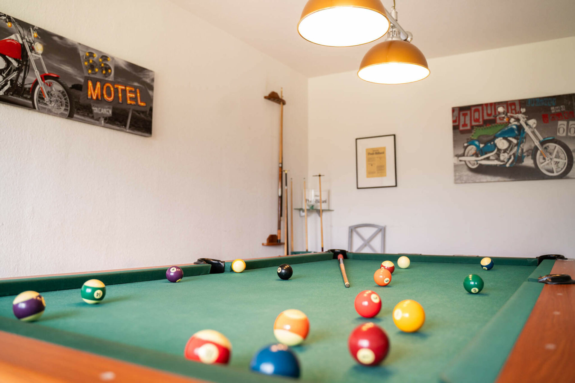Für unsere zwölf Bewohner bieten wir drei großzügige Freizeiträume, die als Treffpunkt für gemeinsame Aktivitäten und geselliges Beisammensein dienen. Unter anderem bieten wir die Möglichkeit Tischtennis, Billard und Darts oder Konsolen zu spielen. Für gemütliche Fernsehabende haben wir verschiedene Streamingportale abonniert.